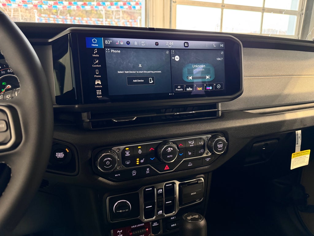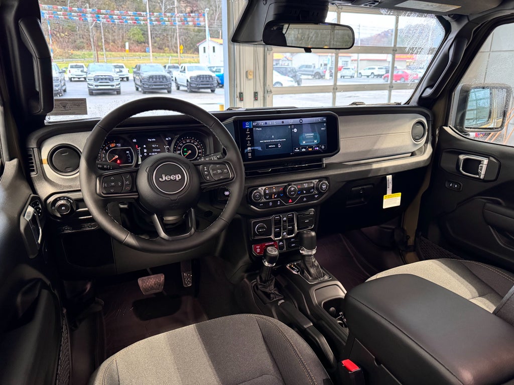 The Jeep Wrangler comes equipped with Android Auto for seamless smartphone integration on the road. Start the vehicle from inside with remote start. Keep your hands warm all winter with a heated steering wheel in this mid-size suv . This mid-size suv has auto-adjust speed for safe following. This mid-size suv offers Apple CarPlay for seamless connectivity. An off-road package is equipped on the Jeep Wrangler. Protect this 2026 Jeep Wrangler from unwanted accidents with a cutting edge backup camera system. This model keeps you comfortable with Auto Climate. This mid-size suv's Forward Collision Warning feature alerts drivers to potential front-end collisions. Bluetooth® technology is built into this 2026 Jeep Wrangler , keeping your hands on the steering wheel and your focus on the road. Set the temperature exactly where you are most comfortable in this vehicle. The fan speed and temperature will automatically adjust to maintain your preferred zone climate.