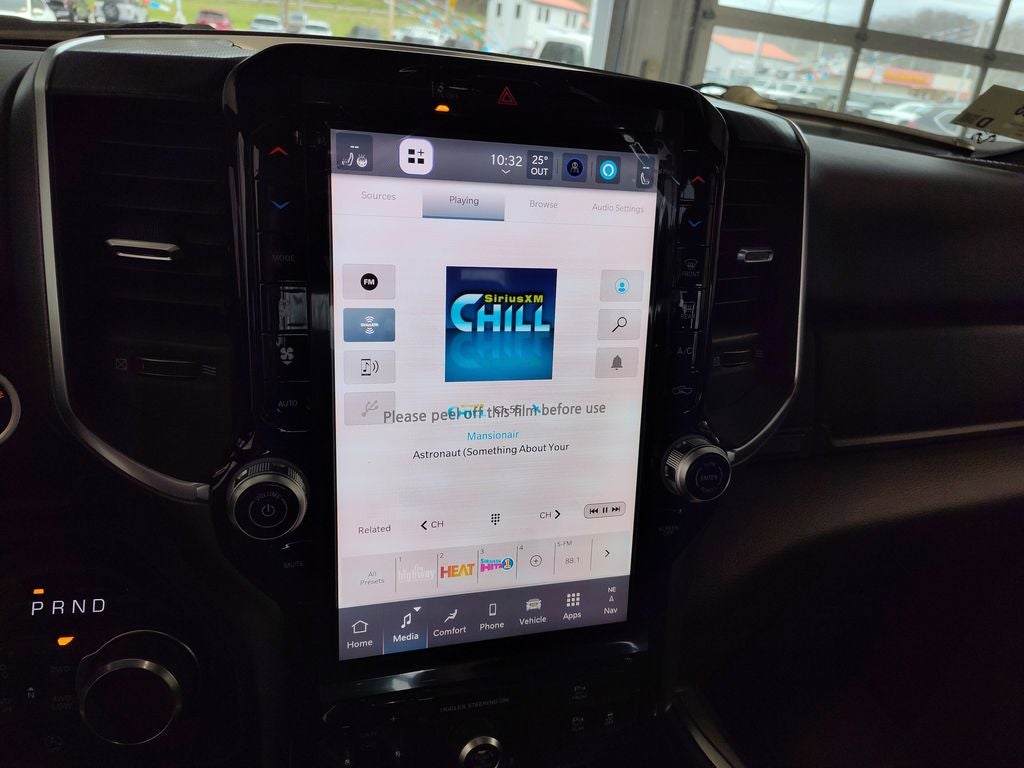 Quick Order Package 27Z Big Horn. Big Horn Level 2 Equipment Group: Google Android Auto; SiriusXM Radio Service; USB Host Flip; Power Adjustable Pedals; Leather Wrapped Steering Wheel; Integrated Voice Command with Bluetooth®; 12" Touchscreen Display; Glove Box Lamp; Auto Power-Folding Mirrors; 115V Auxiliary Rear Power Outlet; Media Hub with 2 Charge Only USBs; Heated Front Seats; Security Alarm; Black Premium Power Mirrors; Apple CarPlay; Premium Overhead Console; 9 Amplified Speakers with Subwoofer; Disassociated Touchscreen Display; Body Color Fender Flares; Remote Tailgate Release; 115V Auxiliary Power Outlet; LED Dome Lamp with On/off Switch; Universal Garage Door Opener; 2nd Row in Floor Storage Bins; Sun Visors with Illuminated Vanity Mirrors; LED Footwell Lighting; Rear Window Defroster; Integrated Center Stack Radio; Rear View Auto Dim Mirror; Rear Power Sliding Window; Connectivity - US/Canada; GPS Navigation; 4G LTE Wi-Fi Hot Spot; GPS Antenna Input; Overhead LED Lamps; Exterior Mirrors with Heating Element; Auto Dim Exterior Driver Mirror; SiriusXM with 360L; Global Telematics Box Module; Connected Travel and Traffic Services; Heated Steering Wheel; Black Exterior Mirrors; Configurable Drive Mode; 400W Inverter; HD Radio; Deluxe Cloth Bucket Seats; Uconnect 5 Navigation with 12.0" Display Radio; Exterior Mirrors with Supplemental Signals; Steering Wheel Mounted Audio Controls; Exterior Mirrors Courtesy Lamps; Air Conditioning ATC with Dual Zone Control; Cluster 7.0" TFT Color Display; Convex Wide-Angle Exterior Mirror Insert. Night Edition: 275/55R20 OWL All Season Tires; Accent Color Premium Power Mirrors; Exterior Mirrors with Supplemental Signals; Black Headlamp Bezels; Exterior Mirrors Courtesy Lamps; Grille Black Surround Black Mesh; Auto Power-Folding Mirrors; Exterior Mirrors with Heating Element; 20" X 9.0" Aluminum Painted Clad Wheels; Auto Dim Exterior Driver Mirror; Black Exterior Truck Badging; Anti-Spin Differential Rear Axle; Accent Color Door Handles; Accent Color Tailgate Handle; Black Interior Accents; Dual Exhaust with Black Tips; Body Color Front Bumper; Convex Wide-Angle Exterior Mirror Insert; Body Color Rear Bumper with Step Pads; Black Tail Lamp Bezels; RAM Grille Badge - Black; Black Painted Exterior Mirrors Caps. Trailer Tow Group II: Trailer Light Check; Trailer Brake Control; Accent Color Tailgate Handle; Trailer Reverse Steering Control; Trailer Tire Pressure Monitoring System. Quick Order Package 23Z Big Horn. 9 Amplified Speakers with Subwoofer. Anti-Spin Differential Rear Axle. Trailer Brake Control. Molten Red Pearlcoat. MyFlexCare Service Plan. 3.92 Rear Axle Ratio. **Equipment listed is based on original vehicle build and subject to change. Please confirm the accuracy of the included equipment by calling the dealer prior to purchase.**