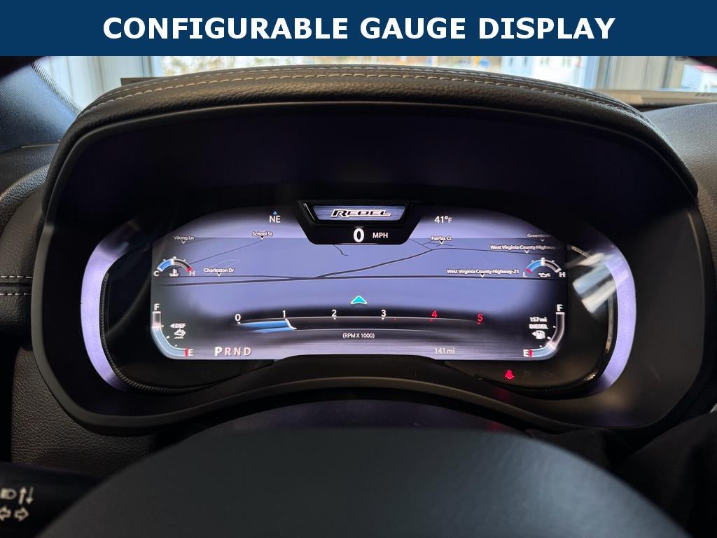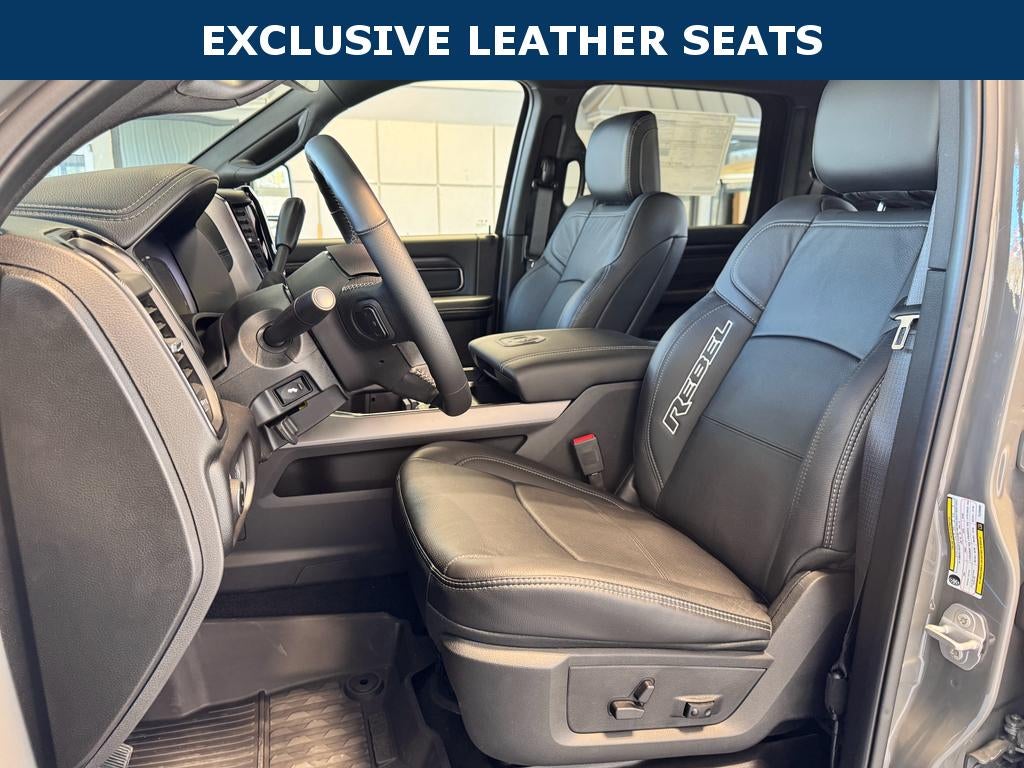 Quick Order Package 24R Rebel. Rebel Level 1 Equipment Group: Rain Sensitive Windshield Wipers; Power Adjustable Pedals with Memory; Body Color Door Handles; Auto Power-Folding Mirrors; Overhead LED Lamps; Exterior Mirrors with Heating Element; Auto Dim Exterior Mirror; MOPAR Rock Rails with Step Pad; Mirror Running Lights; Black Exterior Mirrors; Power-Adjustable Convex Aux Mirrors; Premium Overhead Console; Forward and Reverse Utility Lights; 9 Alpine Speakers with Subwoofer; Power Heated Fold Telescopic Mirrors with Memory; Exterior Mirrors with Supplemental Signals; Sport Performance Hood; Exterior Mirrors Courtesy Lamps; Front Door Locks 2-Door Passive Entry; LED Interior Lighting; Auto High Beam Headlamp Control; LED Dome Lamp with On/off Switch; Universal Garage Door Opener; Exterior Mirrors with Memory; Power Adjust Mirrors; Power Telescoping Mirrors; Leather Trimmed Bucket Seats; MOPAR Front and Rear Rubber Floor Mats; Auto Dim Exterior Passenger Mirror; Sun Visors with Illuminated Vanity Mirrors; Auto Adjust in Reverse Exterior Mirrors. Quick Order Package 2UR Rebel. Auto Level Rear Air Suspension. MOPAR Rock Rails with Step Pad. Sport Performance Hood. MyFlexCare Service Diesel. MOPAR Front and Rear Rubber Floor Mats. **Equipment listed is based on original vehicle build and subject to change. Please confirm the accuracy of the included equipment by calling the dealer prior to purchase.**