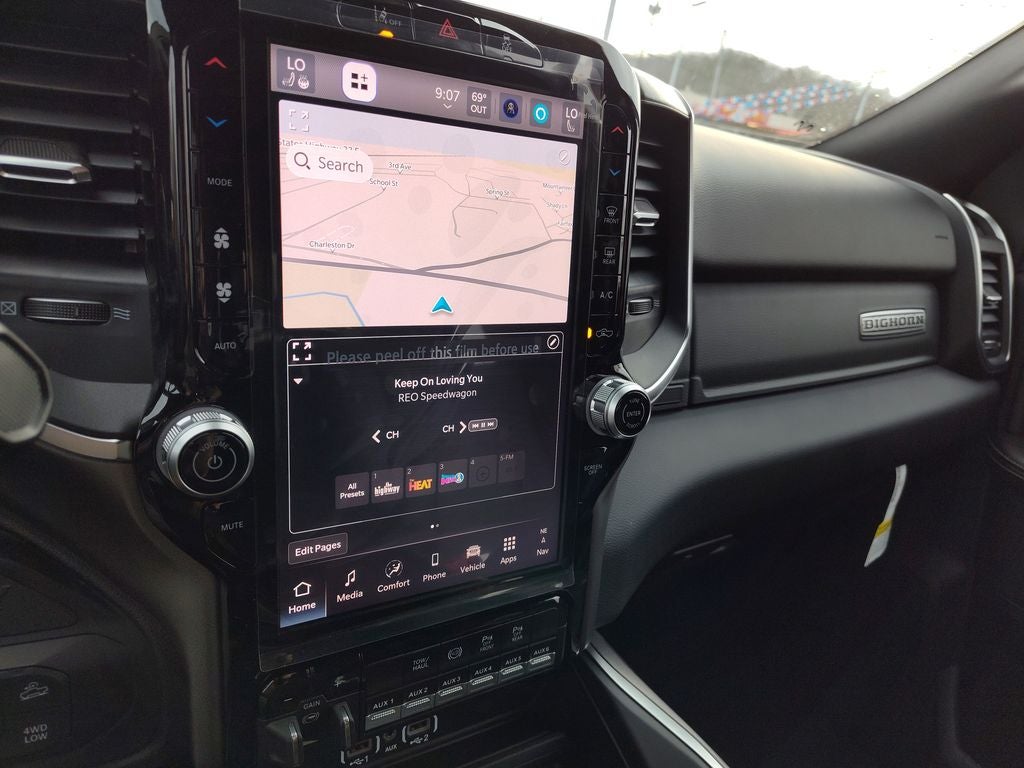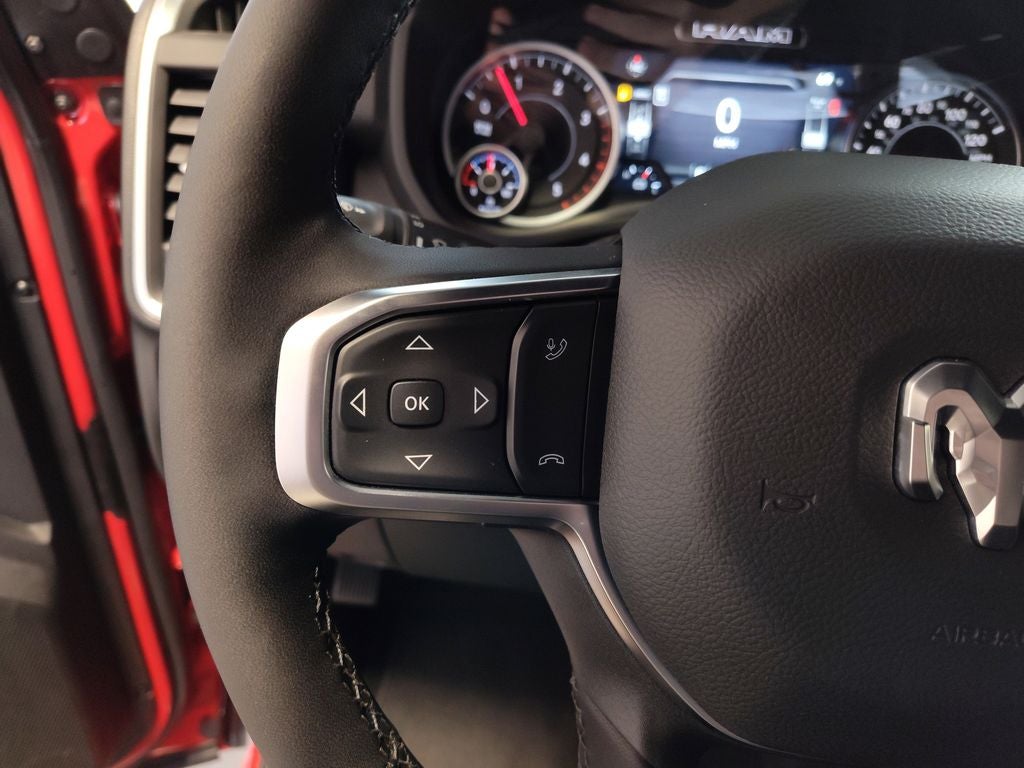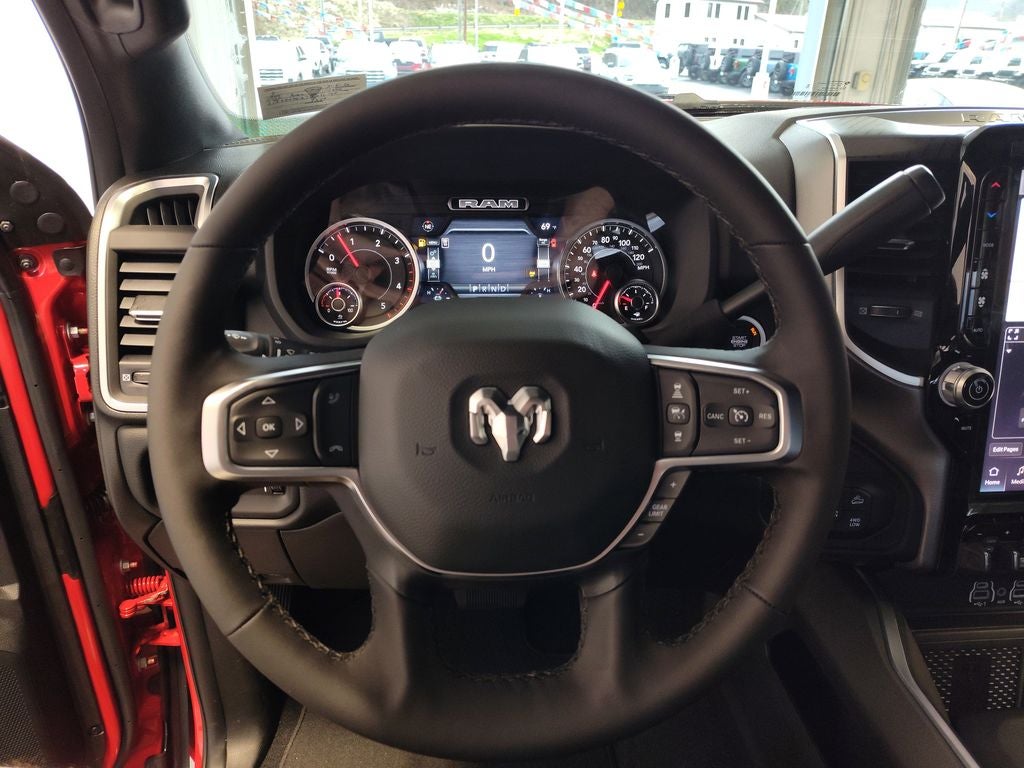 Quick Order Package 24Z Big Horn. Night Edition: Firestone Brand Tires; Gloss Black Nostrils/mic Black Grille; LT285/60R20E OWL On/off Road Tires; Black Exterior Truck Badging; 20" X 8.0" Black Painted Aluminum Wheels; Body Color Grille-Surround; Black Interior Accents; Black Wheel Center Hub; Painted Front Bumper; Painted Rear Bumper. Off Road Package: Front Performance Tuned Shock Absorbers; Transfer Case Skid Plate Shield; Hill Descent Control; Rear Performance Tuned Shock Absorbers. Big Horn Level 2 Plus Equipment Group: Google Android Auto; SiriusXM Radio Service; Surround View Camera System; Blind Spot and Cross Path Detection; For Details. Visit DriveUconnect.com; Power Adjustable Pedals; For More Info. Call 800-643-2112; Integrated Voice Command with Bluetooth®; Emergency Vehicle Alert System (EVAS); 12" Touchscreen Display; Glove Box Lamp; Auto Power-Folding Mirrors; Footwell Courtesy Lamp; 115V Auxiliary Rear Power Outlet; Media Hub with 2 Charge Only USBs; Anti-Spin Differential Rear Axle; Drowsy Driver Detection; Heated Front Seats; Mirror Running Lights; MOPAR Deployable Bed Step; Exterior 115V AC Outlet; Alexa Built-In; Apple CarPlay; Premium Cloth Bucket Seats; Power-Adjustable Convex Aux Mirrors; Active Lane Management System; Forward and Reverse Utility Lights; Locking Lower Glove Box; MOPAR Trailer Camera Wiring with No Camera; Remote Start System; 9 Alpine Speakers with Subwoofer; Disassociated Touchscreen Display; Dual Wireless Charging Pad; Trailer Tire Pressure Monitoring System; Dual Glove Boxes; 115-Volt Auxiliary Front Power Outlet; Universal Garage Door Opener; 2nd Row in Floor Storage Bins; Sun Visors with Illuminated Vanity Mirrors; Center Stop Lamp with Cargo View Camera; Rain Sensitive Windshield Wipers; Rear View Auto Dim Mirror; Rear Power Sliding Window; Rear Dome with On/off Switch Lamp; LED Bed Lighting; Connectivity - US/Canada; Traffic Sign Recognition; GPS Navigation; 4G LTE Wi-Fi Hot Spot; Adaptive Steering System; GPS Antenna Input; Exterior Mirrors with Heating Element; SiriusXM with 360L; Global Telematics Box Module; Connected Travel and Traffic Services; Heated Steering Wheel; Foam Bottle Insert (door Trim Panel); Black Exterior Mirrors; Dampened Tailgate; Trailer Reverse Guidance; Big Horn Instrument Panel Badge; Off-Road Info Pages; Selectable Tire Fill Alert; Trailer Tow Pages; 400W Inverter; HD Radio; Uconnect 5 Navigation with 12.0" Display Radio; Power Heated Folding Telescopic Mirrors; Exterior Mirrors with Supplemental Signals; Steering Wheel Mounted Audio Controls; Exterior Mirrors Courtesy Lamps; Air Conditioning ATC with Dual Zone Control; MOPAR Spray in Bedliner; Auto High Beam Headlamp Control; Cluster 7.0" TFT Color Display; Power Adjust Mirrors; Luxury Steering Wheel; Power Telescoping Mirrors. Quick Order Package 2UZ Big Horn. 5th Wheel/gooseneck Towing Prep Group. Blind Spot and Cross Path Detection. MOPAR Trailer Camera Wiring with No Camera. Anti-Spin Differential Rear Axle. MyFlexCare Service Diesel. Premium Cloth Bucket Seats. Remote Start System. Instrument Panel Mounted Auxiliary Switches. Clearance Lamps. Power 2-Way Driver Lumbar Adjust. Transfer Case Skid Plate Shield. **Equipment listed is based on original vehicle build and subject to change. Please confirm the accuracy of the included equipment by calling the dealer prior to purchase.**