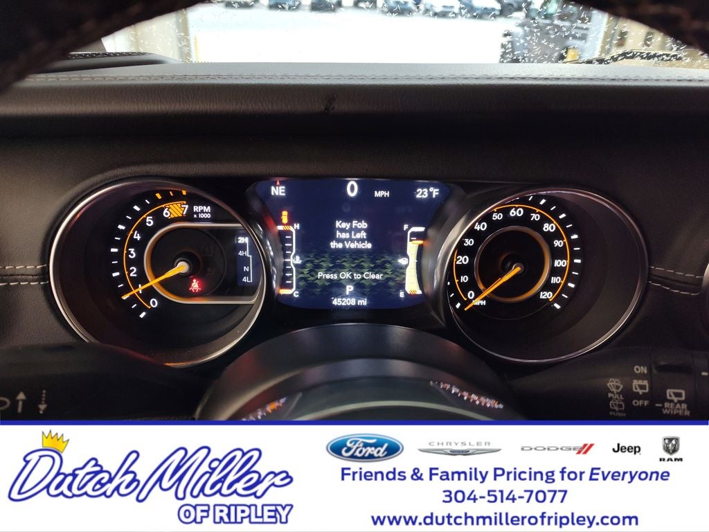 2023 Jeep Wrangler Sahara — 4WD, V6 3.6L, 45,123 miles. Located in Ripley, WV and offered at the best price, this Jeep Wrangler Sahara combines iconic off-road capability with modern comfort and connectivity. Power comes from a reliable 3.6L V6 gasoline engine paired with 4-wheel drive for confident performance on rugged trails and city streets alike. With 45,123 miles, this Jeep Wrangler has been well-maintained and is ready for new adventures. Inside, premium leather seats provide comfort for long drives, while advanced tech features keep you connected and secure. Apple CarPlay and Android Auto integrate your smartphone for seamless navigation, music, and hands-free calling. The back-up camera improves visibility and safety when reversing, and remote start ensures the cabin is comfortable before you step inside. This Jeep Wrangler Sahara also offers the versatile cargo and passenger space Jeep is known for, plus durable build quality designed to handle both daily commuting and weekend exploration. Located in Ripley, WV, this 2023 Jeep Wrangler Sahara is competitively priced to sell fast—take advantage of the best price available for this model in the area. Contact us to schedule a test drive or inspection and experience the blend of capability, comfort, and connectivity that defines the Jeep Wrangler Sahara.