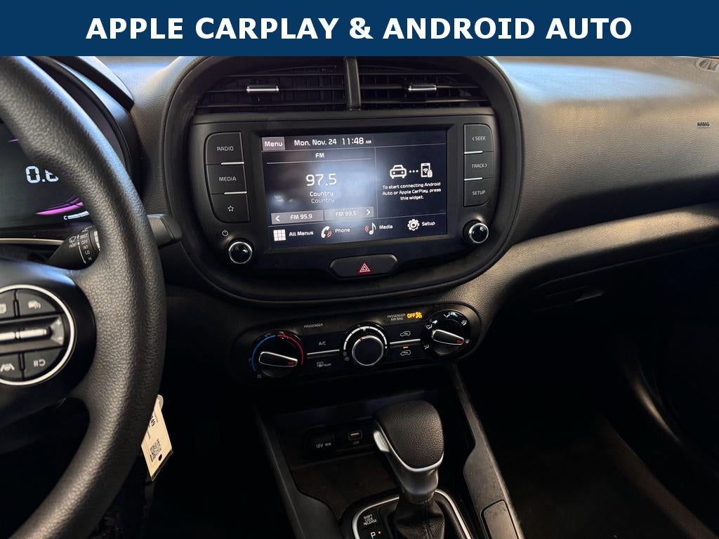 Bluetooth® technology is built into this Kia Soul, keeping your hands on the steering wheel and your focus on the road. See what's behind you with the back up camera on the vehicle. This unit offers Android Auto for seamless smartphone integration. The vehicle offers Apple CarPlay for seamless connectivity. This vehicle is a certified CARFAX 1-owner. This model employs advanced tech for collision avoidance, enhancing safety on the road. The Kia Soul has a clean CARFAX vehicle history report. Set the temperature exactly where you are most comfortable in the Kia Soul. The fan speed and temperature will automatically adjust to maintain your preferred zone climate. This Kia Soul projects refinement with a racy metallic gray exterior. This model is front wheel drive. This model has a 4 Cyl, 2.0L high output engine. The Electronic Stability Control will keep you on your intended path. The high efficiency automatic transmission shifts smoothly and allows you to relax while driving.