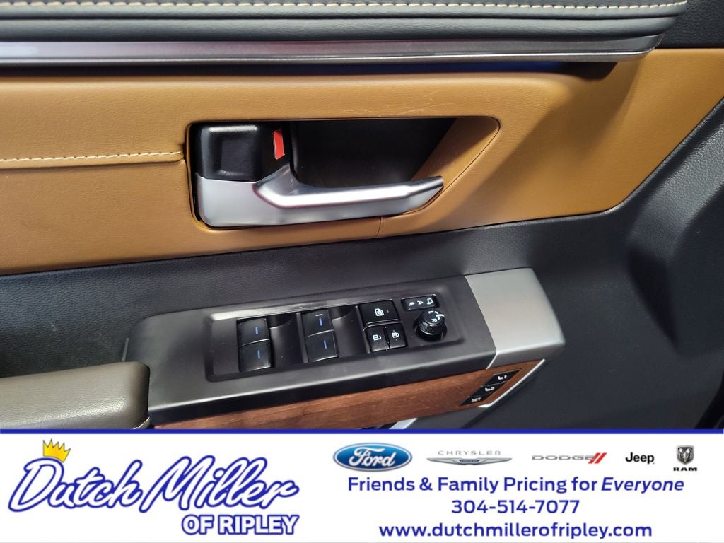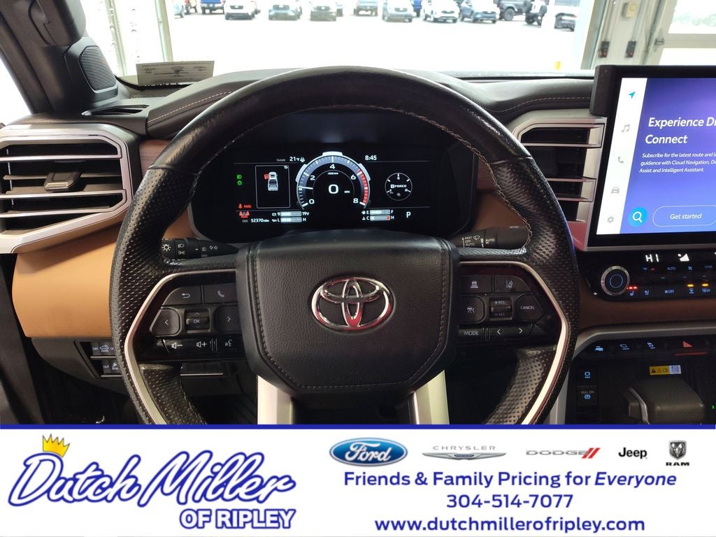 2024 Toyota Tundra 1794 Edition 4WD — Ripley, WV. Premium capability meets refined comfort in this V6 3.5L gasoline Toyota Tundra, offering confident performance on paved roads and off-road trails. This 1794 Edition combines rugged Toyota reliability with upscale interior touches, making it ideal for work, towing, or weekend adventure. Key features: Blind Spot Monitor for safer lane changes, built-in Navigation for stress-free routing, Heated Steering Wheel for cold mornings, and Hands-Free Bluetooth® for convenient calls and media. CARFAX 1-Owner history ensures a clean, well-maintained vehicle record and added peace of mind. The 4WD system provides enhanced traction in rain, snow, and rough terrain, while the V6 delivers strong, efficient power for towing and hauling. Located in Ripley, WV, this Toyota Tundra is competitively priced and listed as the best price in the area — exceptional value for a 1794 Edition with these options and documented single-owner care. Interior materials and creature comforts reflect the model's upscale positioning, while practical features support daily driving demands. Schedule a test drive in Ripley to experience the smooth power delivery, advanced safety tech, and premium cabin feel firsthand. This 2024 Toyota Tundra 1794 Edition represents immediate availability, proven reliability, and outstanding local value.